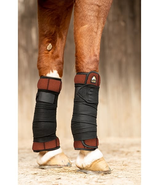 Sportowe podkładki bandażowe wykonane z oddychającej i przepuszczającej powietrze tkaniny dystansowej, która umożliwia stałą cyrkulację powietrza i dodatkowo amortyzuje nogę. Z roztopionym włóknem ceramicznym w chłonnej wyściółce wewnętrznej, która stymuluje krążenie krwi, a tym samym może zapobiegać urazom ścięgien lub wspomagać regenerację. KV do mocowania na nodze konia umożliwia szybsze i nieskomplikowane zakładanie. WYMIAR 37x44cm.