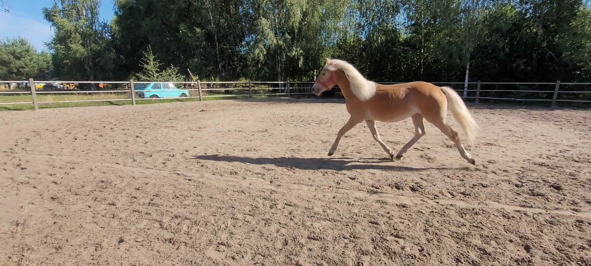 Duży, ramowy, bardzo dobrze zbudowany (delikatna, sportowa, ale nie szczupła budowa) ogierek haflinger, urodzony 7 Maja 2024 roku. Przyzwyczajony do zabiegów pielegnacyjnych, mierzenia temperatury, wizyt weterynarza i kowala. Bardzo ciekawski, odważny, ale przy tym spokojny, szukający zabawy. Szuka kontaktu z człowiekiem, uwielbia wszelkie drapanki i mizianki. Dzień spędza na dworze, na noc boks. Potrafi korzystać z poidła, wychowany w stadzie z 4 klaczami, kulturalny chłopak. Shelby nauczony jest chodzenia na uwiązie, oraz cofania się od nacisku, nożki podaje bez zastrzeżen. Bez problemu wchodzi do przyczepy. Wierna kopia swojej matki, nie tylko pod względem wyglądu, ale również charakteru, więc jesteśmy w stanie zagwarantować naprawdę bezpiecznego, wychowanego zwierzaka.