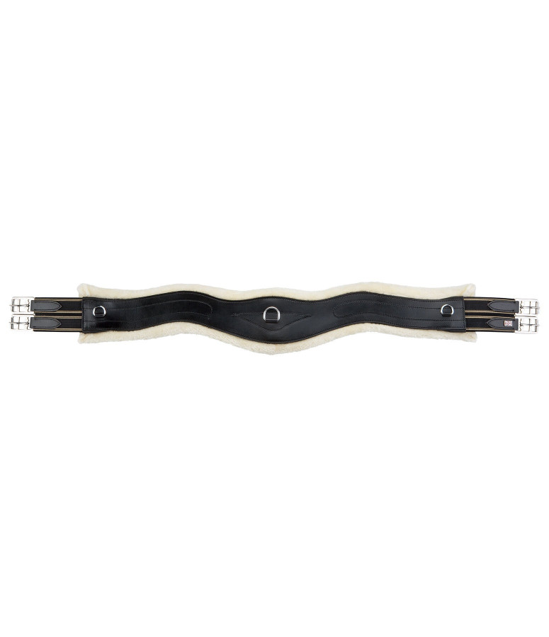 Anatomicznie wyprofilowany popręg skórzany ze zdejmowaną częscią „teddy”, trzema ringamitypu D, elastycznymi wstawkami po obu stronach i sprzączkami rolkowymi. Szerokość popręgu 11 cm, z polarem „teddy” 15 cm.