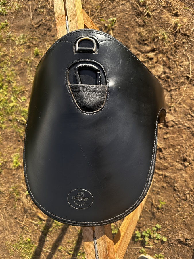 Sprzedam bądź wymienię popręg PRESTIGE ITALIA A8 z fartuchem. Stan celujący, niby używany ale wyglada jak nowy. Jedyna wada sa lekkie przetarcia przy sprzaczkach, widoczne na zdjeciach. Kolor czarny, rozmiar 120cm. Cena nowego to 1400zł moja to 950zł. Możliwość wymiany na taki sam tyle ze w kolorze brązowym, bądź popręg equick eDiamond brązowy 120cm.
