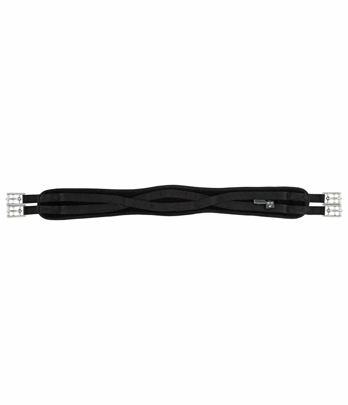 Szczególnie oddychający długi pas wykonany z pochłaniającej wilgoć i szybkoschnącej tkaniny frotte z rdzeniem z tkaniny dystansowej, która umożliwia stałą cyrkulację powietrza, odprowadza pot na zewnątrz, a także pełni funkcję amortyzującą. Anatomiczny krój zapewniający więcej miejsca na łokcie. Klamry rolkowe w kolorze srebrnym, wykonane ze stali nierdzewnej. Szerokość paska 8,5 - 11 cm. Bez gum.