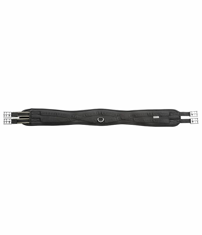 Długi popręg z miękkiej, amortyzującej pianki memory, która pod naciskiem ugina się, a następnie wskakuje z powrotem do pozycji wyjściowej. Wierzchnia strona pokryta wytrzymałą gumą chloroprenową. Anatomicznie skrojony, z szeroką powierzchnią styku i centralnym D-ringiem do łatwego mocowania wodze pomocniczej. Z gumami. Klamry ze stali nierdzewnej. Szerokość 8,5 - 10,5 cm.