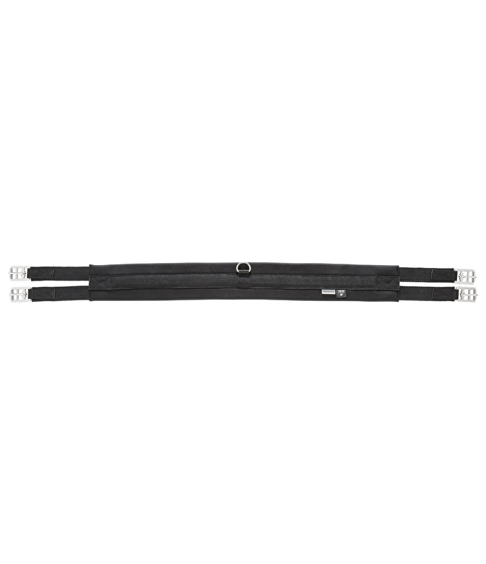 Wytrzymały długi popręg wykonany z miękkiej, odpornej na zabrudzenia gumy chloroprenowej ze wzmocnieniem z polipropylenu. Centralny D-ring do przypięcia wodzy pomocniczej. Z klamrami rolkowymi. Bez elastycznych wstawek. Szerokość 10 cm. Długość 130 cm.