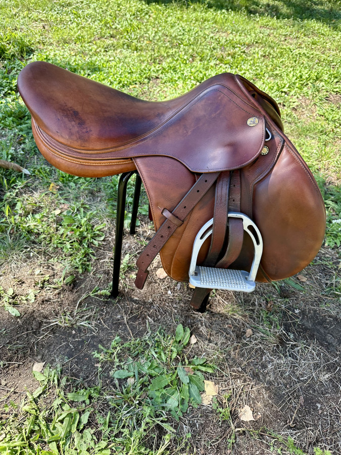 Siodło jest w pełni sprawne ale już ma swoje lata i są na nim ślady zużycia . Nigdzie nie jest pęknięte ani rozdarte. Sprzedaje wraz z puśliskami i aluminiowym strzemionami.
