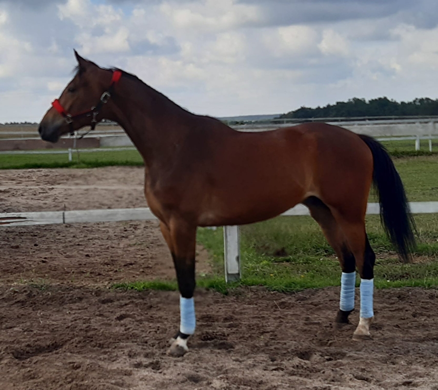 Urodziwy wałach do sportu lub rekreacji . Od hodowcy , wychowany na pastwiskach w stadzie zwinnymi końmi . Bardzo spokojny w obejściu , w trakcie ujeżdżania , było już wsiadanie . Koń ma niewielką bliznę na tylnej nodze ,nie kuleje , taka wada kosmetyczna . Jako źrebak zajął 2 miejsce na wystawie w bogusławicach , bardzo dobre opinie od sędziów .