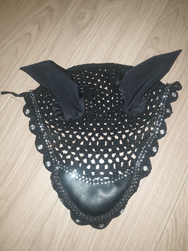Sprzedam czarne nauszniki z kryształkami w rozmiarze pony, użyte kilka razy, stan bardzo dobry.