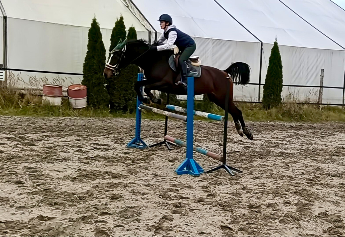 Klacz zajeżdżona na spokojnie obecnie zaczyna pracować na przeszkodach zawsze po drugiej stronie, nie brykająca, nie płochliwa.