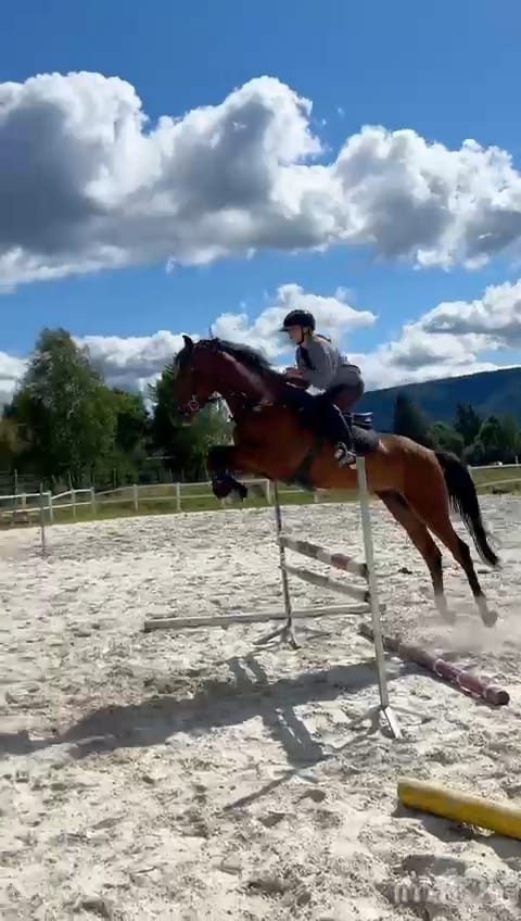 Koń jest w stałym treningu, bardzo szybko się uczy. Przy odpowiedniej osobie będzie super koniem do startów.