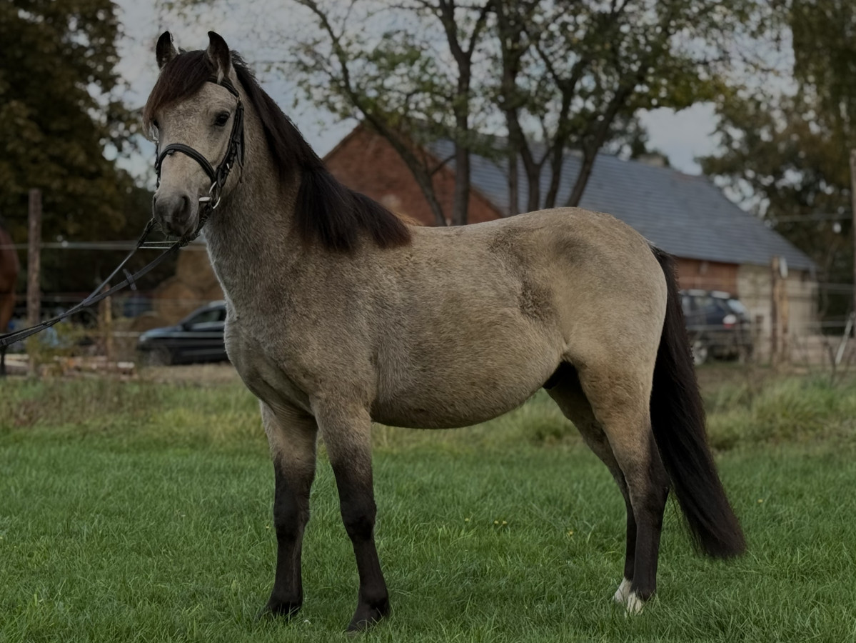 Kucyk jest wstępnie zajeżdżony, pracuje spokojnie z ziemi i pod siodłem – gotowy do dalszego szkolenia.