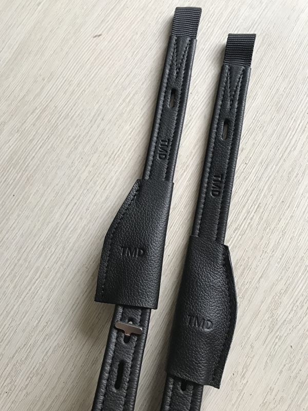 Puśliska ujeżdżeniowe TMD wykonane z wysokiej jakości skóry cielęcej z wszytą taśmą nylonową zapobiegającą rozciąganiu.