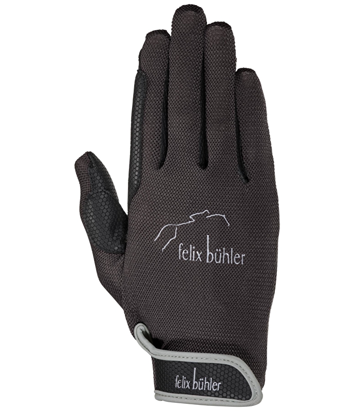 Stylowa rękawica jeździecka na lato. Miękka, oddychająca siateczka z tyłu dłoni zapewnia wyjątkowy komfort noszenia i zapewnia optymalną swobodę ruchów dla delikatnej dłoni. Z eleganckim nadrukiem z logo z tyłu dłoni. Pas z zapięciem na rzep. Materiał wierzchni 80% poliester, 20% elastan. Dłoń 100% poliester z powłoką poliuretanową.