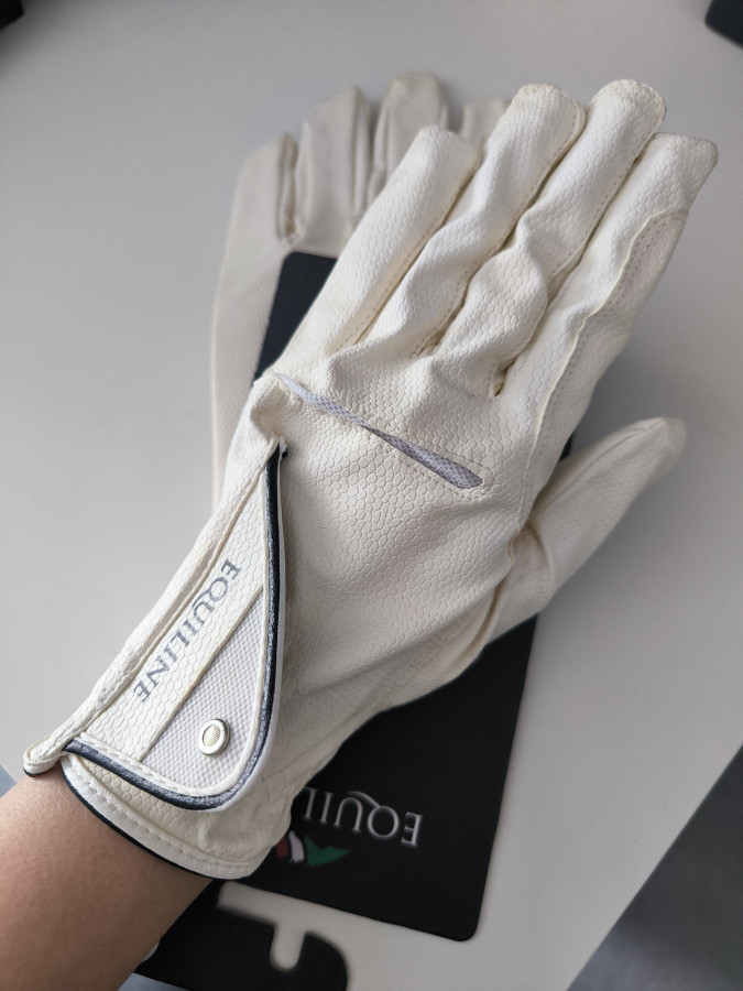 Rękawiczki jeździeckie Equiline. Biało kremowe idelane na zawody jeździeckie
