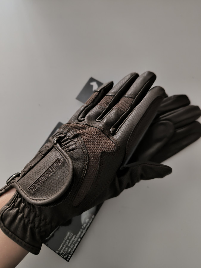 Rękawiczki jeździeckie schwenkel produkcja dla uvexa. Brązowe Świetnie wykonane. Z skórki w połączeniu z siateczka dzięki czemu dłoń Wentyluje podczas jazdy nie przegrzewa się. Skóra miękka bardzo fajnie pracuje na ręce nie uwiera , dopasowuje się. Nigdy nie używane. Rozmiar z metki to 5,5 jednak proszę o spojrzenie w wymiary rzeczywiste i zakup według tego co pokazane. Pasuja na drobną dłoń XS, według tabeli Uvex na około 6/6,5 rozmiar.