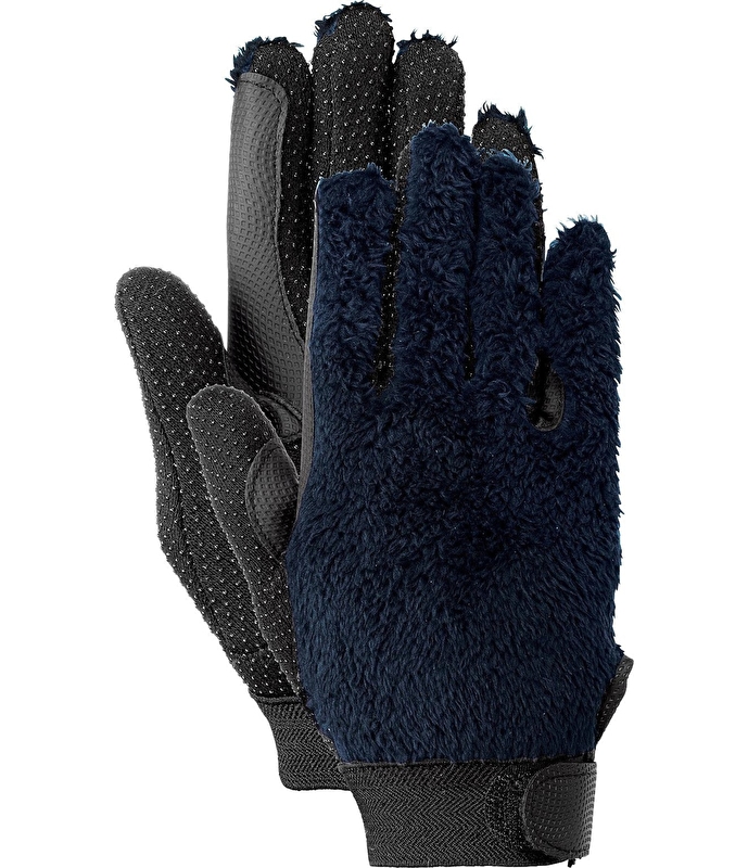 Rękawica jeździecka z długim włosiem, która jest wyjątkowo puszysta i ciepła. Wierzch dłoni wykonany z miękkiego pluszowego polaru. Dłoń i palce z ćwiekami z PVC. Wzmocnienia wodze, połączony elastyczny pas na rzep. 100% poliester, 95% poliester w dłoni, 5% elastan.