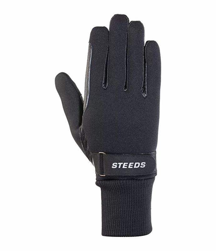 Wodoodporne zimowe rękawiczki jeździeckie wykonane z elastycznego materiału typu soft shell. Niezawodny chwyt wodzy dzięki wytłaczanej sztucznej skórze od wewnątrz. Kompatybilny z ekranem dotykowym i elastyczny prążkowany pas z regulowanymi mankietami na rzepy. Materiał wierzchni 85% poliester, 15% elastan. Dłoń 80% poliuretan, 20% poliester. Podszewka 90% poliester, 10% elastan.