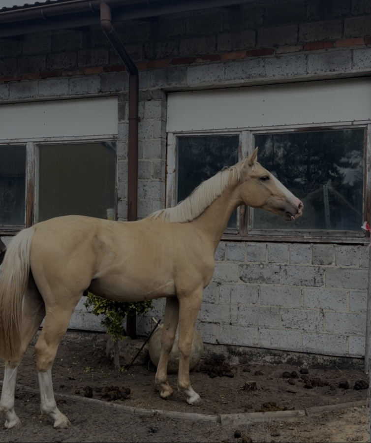 Miał również zakładane siodło, pas do lonżowania. Całe dnie przebywa na wolnym wybiegu. Zdrowy, bez alergii, mocne kopyta