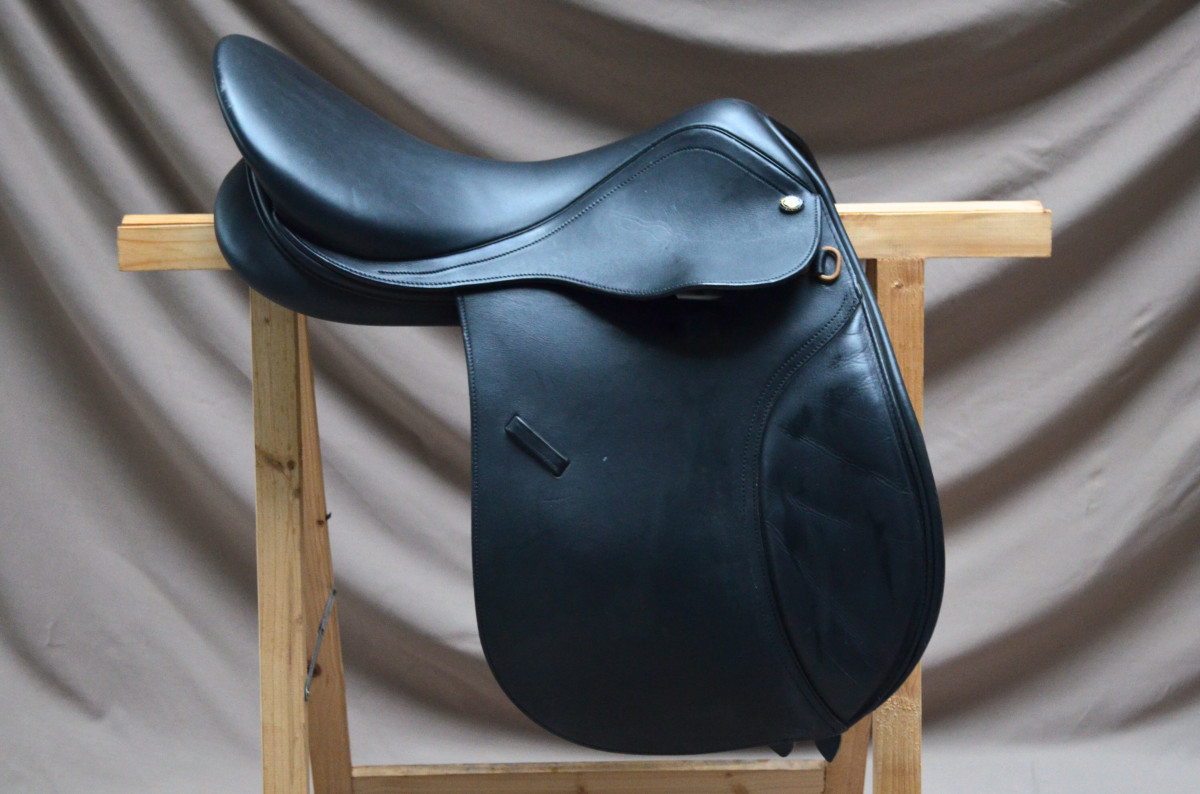 Siodło ma bloki udowe, co zapewnia jeźdźcowi stabilność w skoku. Marka Saint Lourdes pochodzi z Buenos Aires w Argentynie. Oznaczone jako Tree S (standard), co może odpowiadać rozmiarowi M. W dobrym stanie, widoczne zadrapania na tylnym i przednim łęku oraz przetarcia na tybince widoczne na zdjęciach.