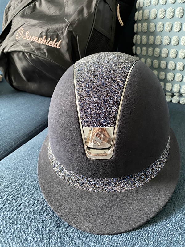 Sprzedam kask Samshield w bardzo dobrym stanie, brak jakichkolwiek widocznych śladów użytkowania, skorupa Miss Shield Premium z kryształkami Swarovskiego na topie i lamówce.