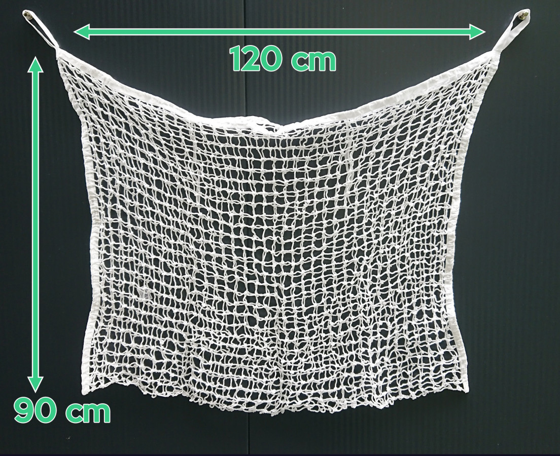 Siatka jest bardzo duża 120 x 90 cm i pomieści swobodnie 8-10 kg siana.
