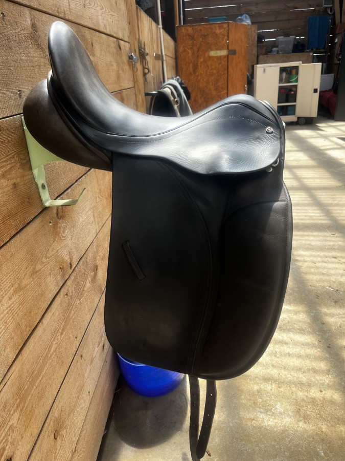 Mam na sprzedaż siodło ujeżdżeniowe County Competitor 2000 16,5”. Wymiary podane na zdjęciach. Siodło z szerokim kanałem i poduszkami kolanowymi. Przeszyte przystuły pod poduszkami kolanowymi zapobiegają przesuwaniu się siodła na bardziej okrągłych koniach co zapewnię lepsze użytkowanie. Całe wypełnienie świeżo wymieniane w tym roku, niestety mój koń rozbudował się na tyle, że szukam innego siodła.