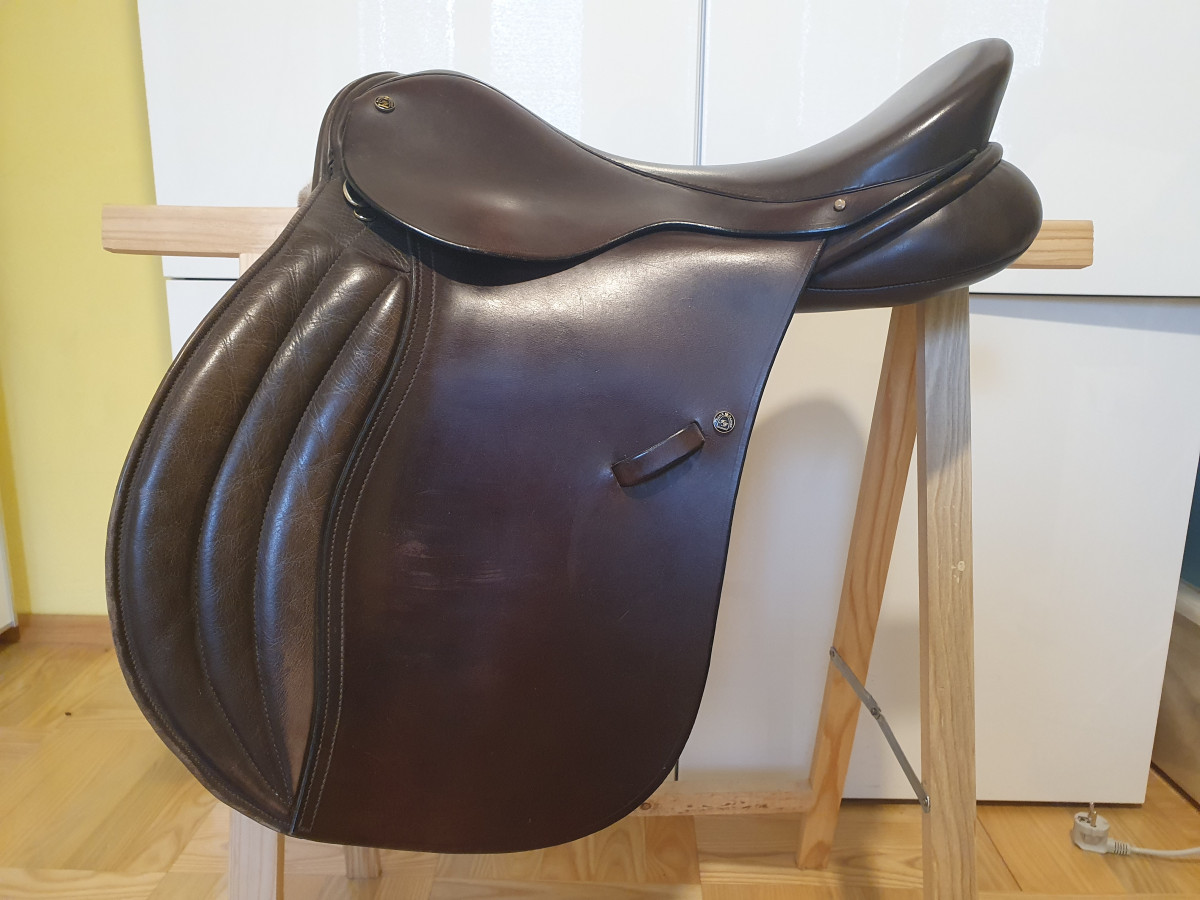 Sprzedam siodło bardzo znanej angielskiej firmy Frank Bains, model Eclipse, wszechstronne, rozmiar 17,5, kolor brązowy. Rozstaw łęku na końcu sztyc 30/31 cm. Standardowy kanał między panelami. Wypełnienie paneli- wełna. Lekkie przetarcia na tylnym łęku pokazane na zdjęciach. Możliwość wysyłki do przymiarki przy płatności za pobraniem. Dla zdecydowanych możliwość negocjacji ceny. Zapraszam do kontaktu.