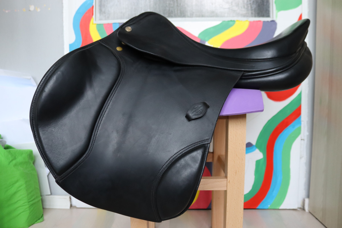 Siodło regularnie pielęgnowane, przechowywane w odpowiednio wietrzonym pomieszczeniu w pokrowcu, bez kontaktu spoconego czapraka z siedziskiem. Dobrze wypchane, bez ubytków, pęknięć i zarysowań.