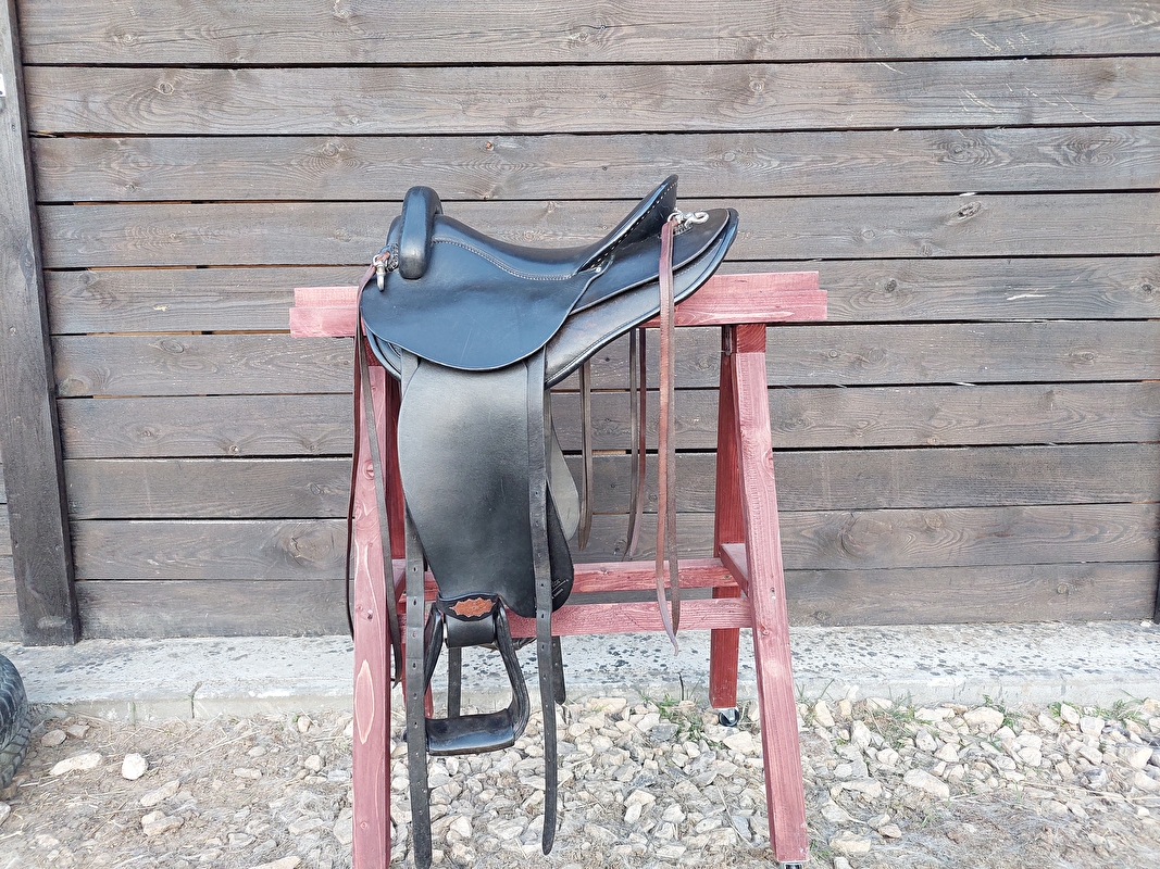 Sprzedam super siodło rajdowe (west bez horna) marki Deuber and Partner. Siodło w bardzo dobrym stanie, posiada ślady użytkowania w postaci zarysowań i lekkich odbarwień. Jak na westa bardzo krótkie, będzie dobre na drobnego konia z płaskim grzbietem i wydatnym kłębem. Siedzisko miękkie, małe, jak klasyczna 16,5" - będzie dobre dla kobiety. Wymiary na zdjęciach. Wysyłam do przymiarki po wpłacie 100% kaucji i podpisaniu umowy.