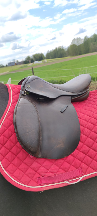 Na sprzedaż siodło angielskiej marki GFS, bardzo dobre wykonanie. Siodło w rozmiarze 15,5" łęk M według DawMaga. Siodło w stanie dobrym, niestety do paki z siodłem dostała się wilgoć która sprawiła, że siodło ma różne odbarwienia. Skóra jest dalej miękka, nie ma innych poważnych uszkodzeń. Nie pęka, nie marszczy się. Terlica cała. Na zdjęciu siodło leży na lekko wykłebionej ślązaczce. Wypełnienie paneli wełniane. Długość paneli 37cm. Szerokość kanału na kręgosłup 5-8cm.