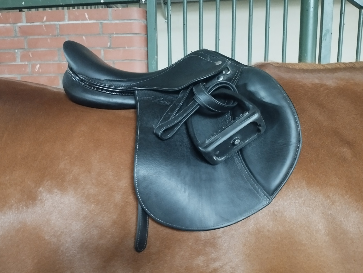 Siodło zadbane, wygląda jak prawie nowe. Mięciutkie. Olejowane. Dobrze trzyma w skoku. Wypełnienie paneli jest wymienne, można dopychać, żeby lepiej dopasować do konia.