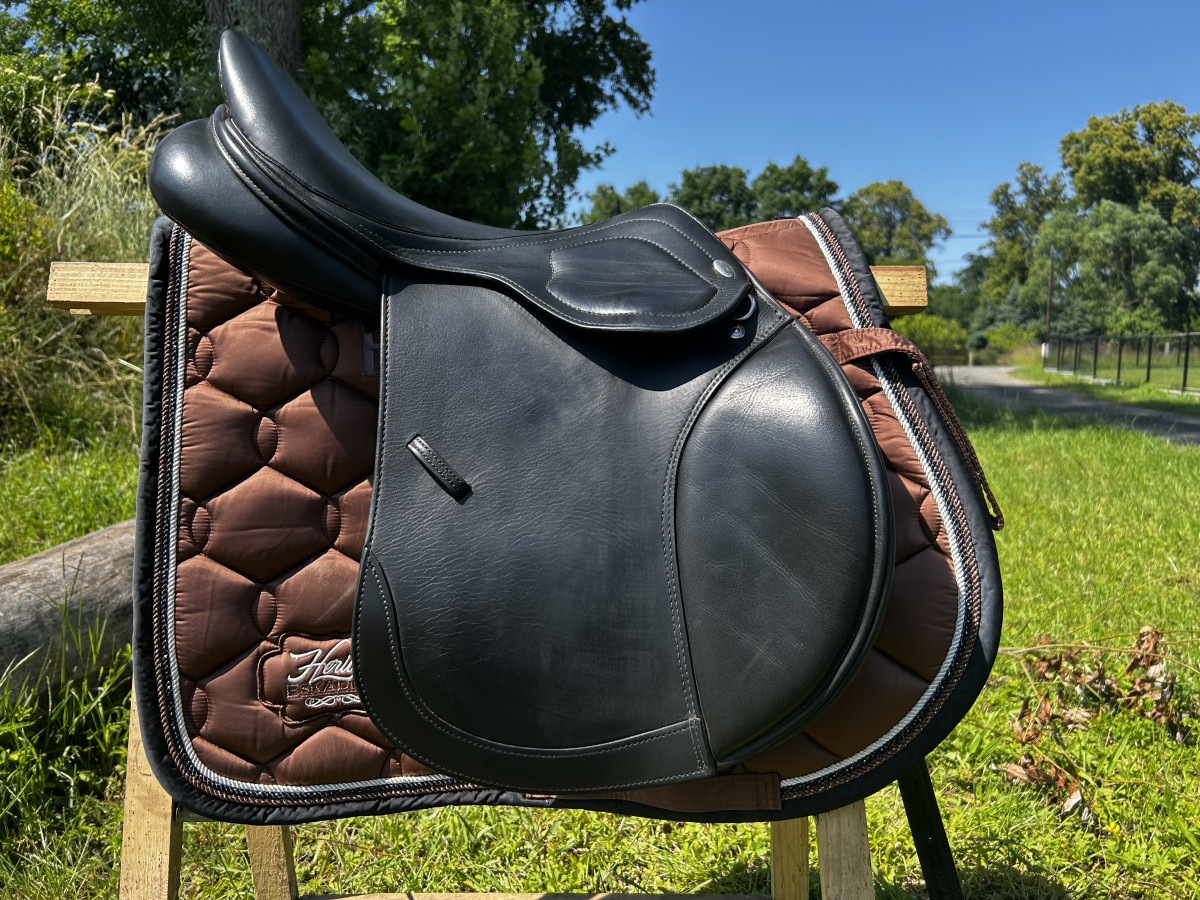 Z wielkim bólem serca sprzedam super siodło skokowe Kentaur Titan II (17-17,5 cala), niestety mój koń już z niego wyrósł. Łęk rozmiar 2 (32-33 wg Prestige). Bardzo wygodne siodełko, przyjemnie się w nim skacze jak i jeździ po płaskim. Wypełnienie wełniane, wymieniane na wiosnę 2025. Siodło używane, jednak bardzo zadbane, regularnie konserwowane, zawsze trzymane w pace i w pokrowcu. Zainteresowanym mogę wysłać szczegółowe wymiary.