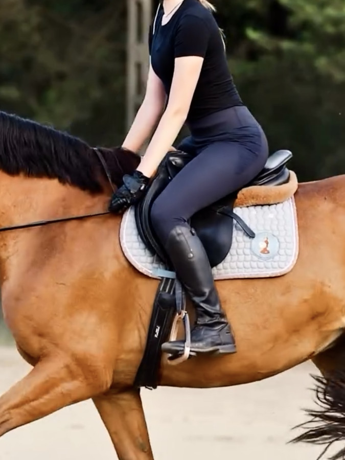 Profilowane klocki kolanowe fajnie trzymają nogę podczas skoku, a siodło idzie bardziej w stronę tych kontaktowych przez co fajnie czuć konia na parkurze ;))