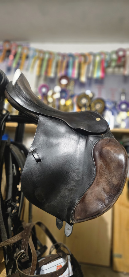 Prestige Appaloosa 32, koloru czarnego. Model ma 17 cali. Dzięki duzym klockom z przodu i z tyłu latwiej się utrzymać w skoku nawet na koniach, które wysadzają z siodła. Z wadami estetycznymi nie przeszkadzającymi w użytkowaniu.