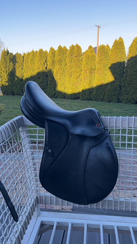 Sprzedam swietne siodło skokowe , u mnie uzywane przez 2 lata , regularnie czyszczone i pastowane. Lekkie wady widoczne na zdjeciu , skora lekko miejscami pekla na siedzisku na samej gorze i lekko jest wytarta tybinka . Wiecej dokladnych zdjec podesle na pv .