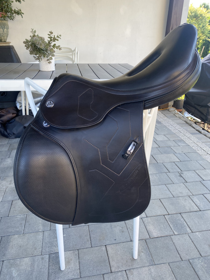 Siodło używane, zadbane. Bardzo mięciutkie, lekkie i wygodne. Można dopasować pod konia dzięki możliwości korekty paneli oraz zmiany rozstawu łęku.