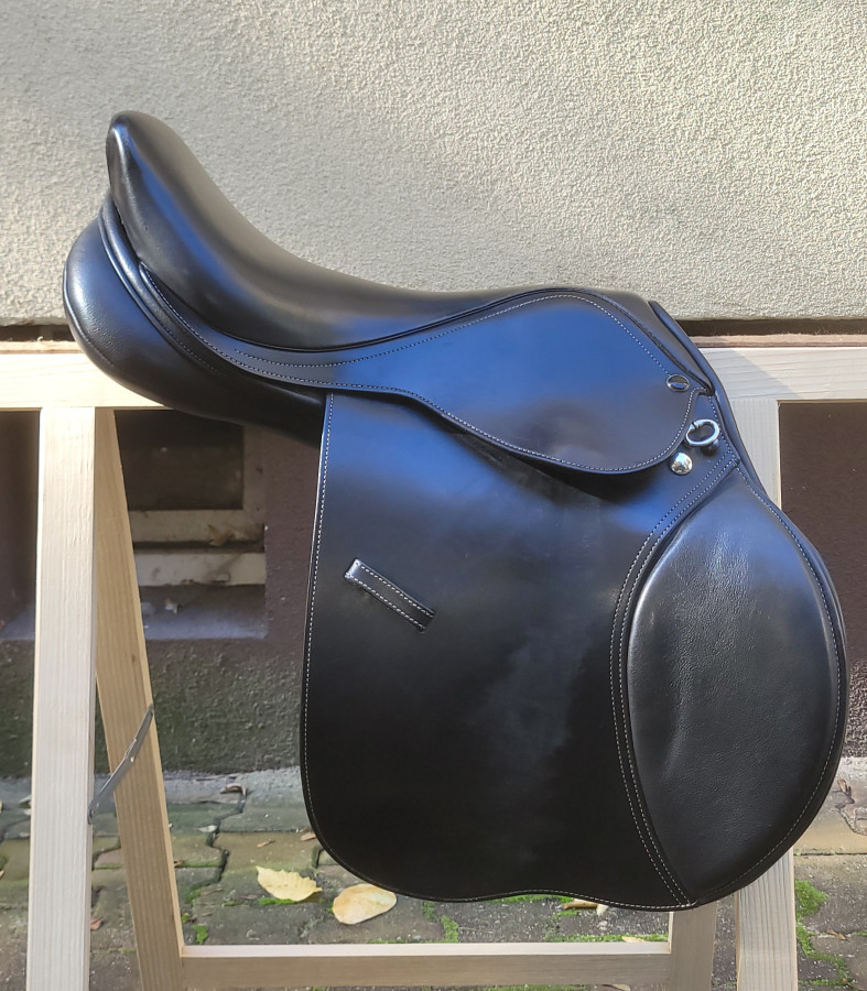 Regularnie pielęgnowane, przechowywane w suchym miejscu. Skóra miękka, elastyczna, bez uszkodzeń – gotowe do jazdy!