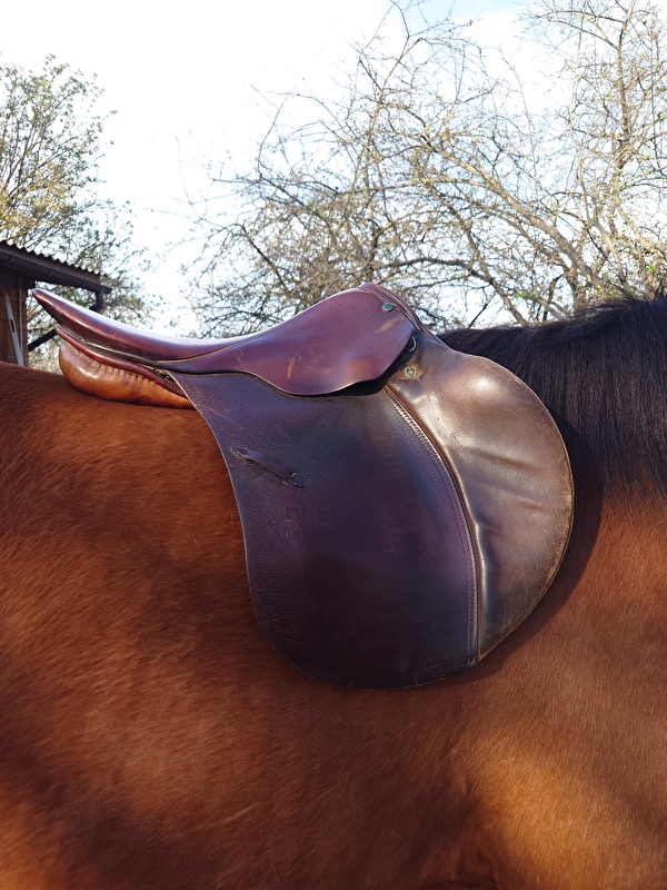 Siodło skokowe Stubben Siegfried II rozmiar 17,5" w dobrym stanie, nie jest połamane ani uszkodzone.