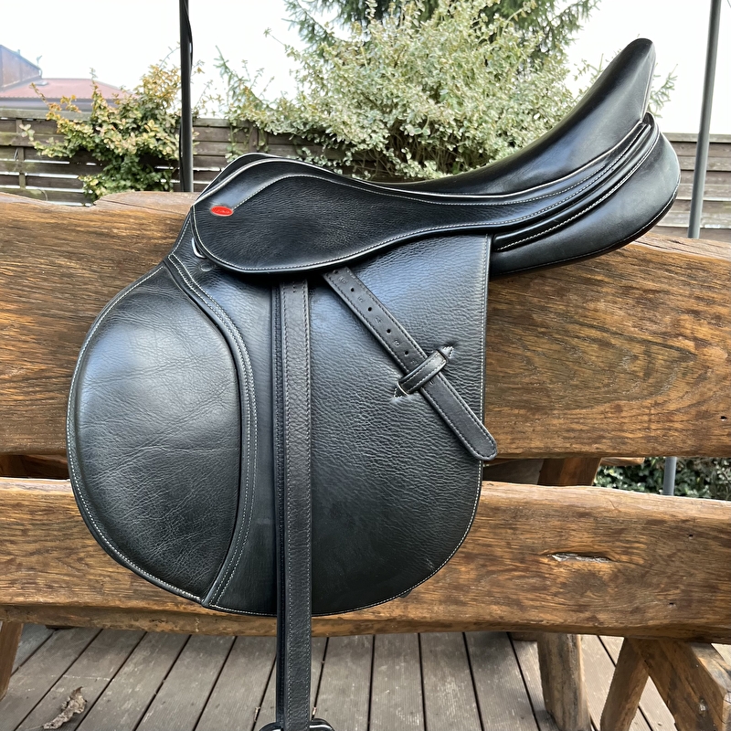 Siodło jest w przepięknym stanie, zadbane, trzymane w pokrowcu, w ogrzewanym pomieszczeniu, regularnie pastowane. Ultra lekkie, Skóra świetnej jakości, system wymiennych łęków easy change, siodło daje olbrzymie możliwości łatwego dopasowania do konia