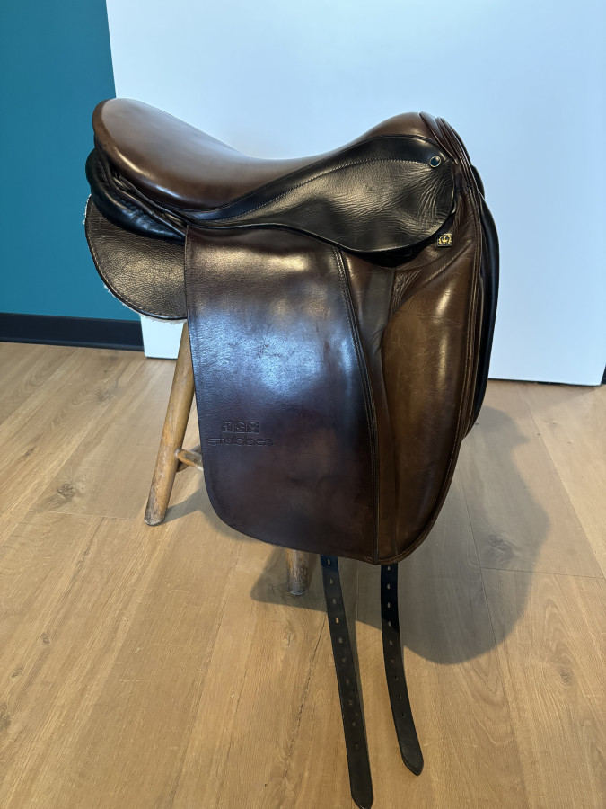Sprzedam używane siodło Stubben Harmony. Siodło zostało przerobione przez rymarza- zamiast poduszek wszyte są ławki jak w siodłach westernowych. Dzięki temu jest wygodniejsze szczególnie dla konia przy dłuższych spacerach czy rajdach. Siedzisko mniej więcej rozm 17, rozstaw łęku 31 (mniej więcej jak 34 w Prestige). Siodło jest bardzo wygodne, posiada ślady użytkowania, ale jest w dobrym stanie. Bardzo dobrze leży na koniu, wręcz go otula. Ja używałam na młodym Hucule.