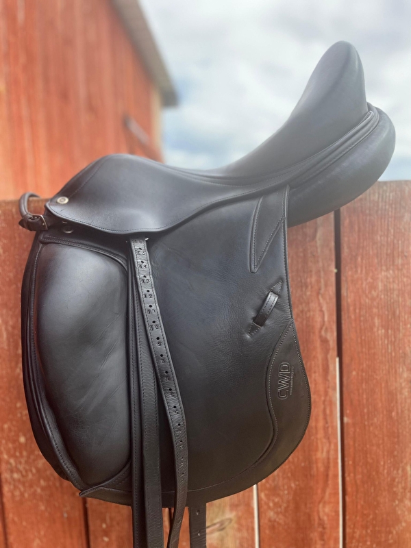 Na sprzedaż siodło ujezdzeniowe marki CWD. Siodło bardzo mało używane ze względu na to, że moja klacz była głównie użytkowana w hodowli. Stan siodła oceniam na bdb,.ale posiada dwa mankamenty takie jak łata na poduszce kolanowej oraz delikatnie obdrapany tylny łęk. W związku z tym cena jest atrakcyjna. Siodło sprzedaje wraz z oryginalnym pokrowcem CWD. Łęk siodła jest standardowy, tybinka 2XL- 38cm, siedzisko 17,5cala. Cena 5500zl + wysyłka. Jest możliwość wysyłki za pobraniem.