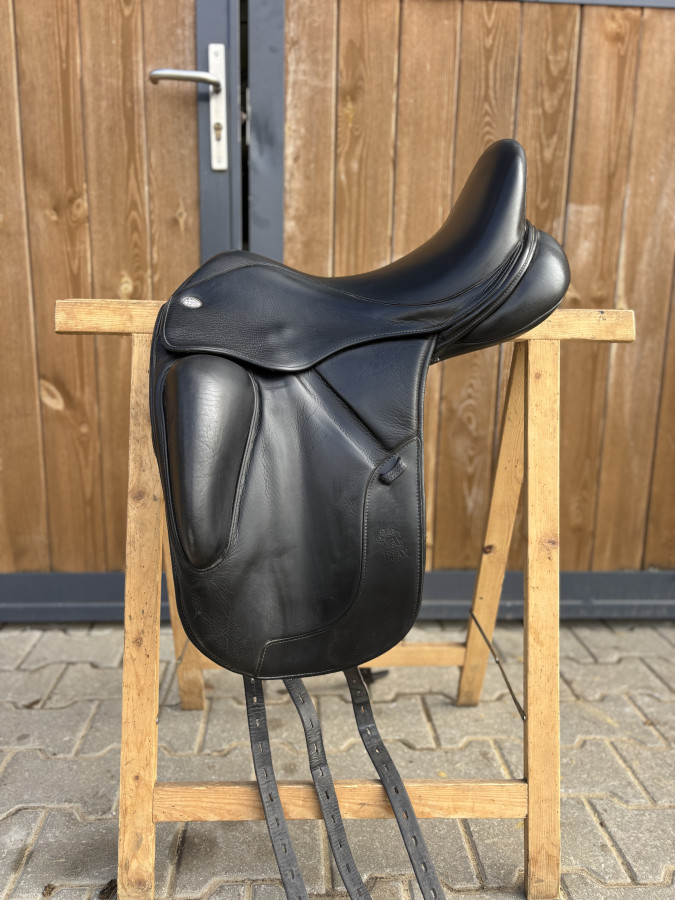 Sprzedam siodło ujeżdżeniowe Fairfax model Gareth, rozmiar 17 cali. Siodło w pełni modułowe, łatwe do dopasowania przez saddlefittera.