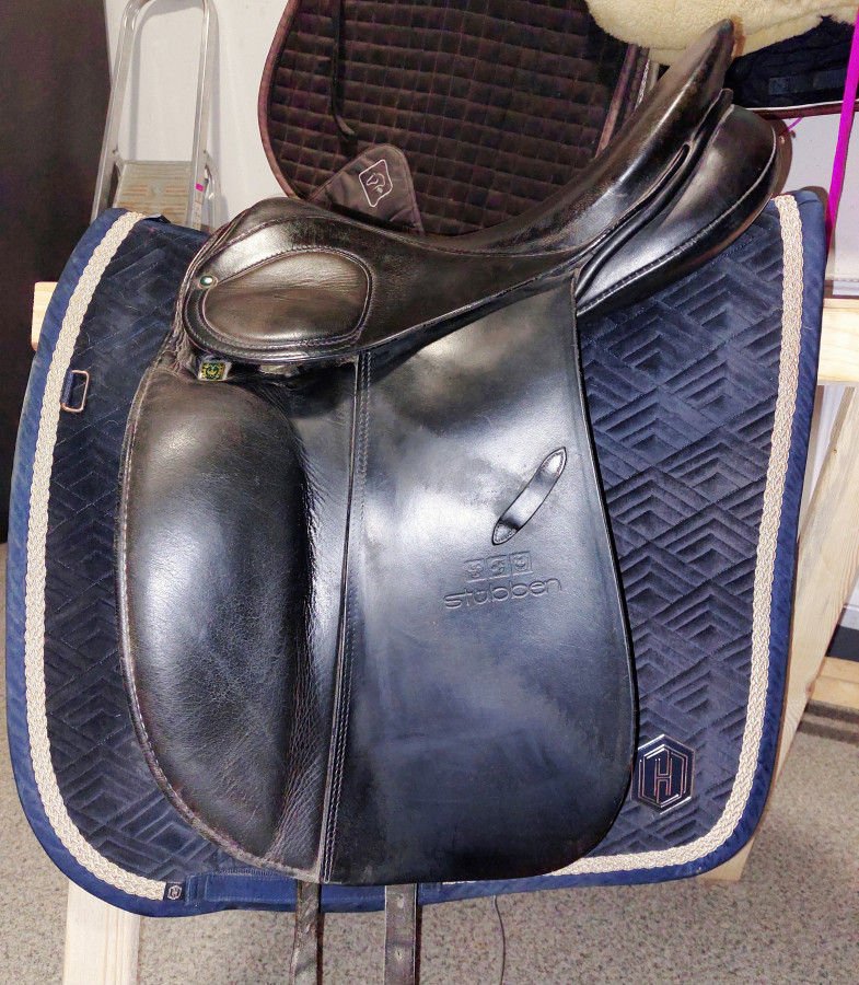 Bardzo wygodne siodło ujeżdżeniowe, dość szeroki kanał, łęk w rozmiarze 31 (L w Daw Magu) sprawdzi się na koniach średnio/szerokich. Siedzisko 17 cali. Duże klocki kolanowe zapewniające komfort i dobre oparcia dla jeźdźca. Przystuły w dobrym stanie. Negocjacja ceny.