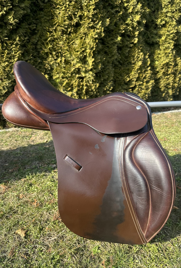 Mam na sprzedaż brązowe siodło Daw Mag model HUBERT w wersji EXCLUSIVE. Siodło jest wszechstronne rozmiar siedziska 17,5, łęk L. Siodło jest w stanie dobrym widoczne lekkie ślady użytku, których nie widać podczas jazdy. jest w pięknym brązowym kolorze. Siodło jest regularnie czyszczone i olejowane. Aktualnie przebywa w domu