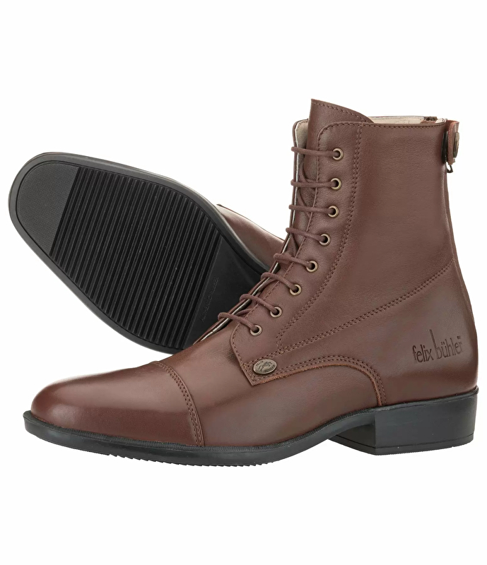 Eleganckie, sznurowane botki wykonane z włoskiej skóry bydlęcej licowej. Zamek błyskawiczny z tyłu ułatwia zakładanie. Wyściółka wykonana z miękkiej świńskiej skóry. Smukła stopa dzięki kwadratowemu kształtowi. Odporna na ścieranie gumowa podeszwa i amortyzująca wkładka z wyjmowaną wkładką. Wyprodukowano w Portugalii.