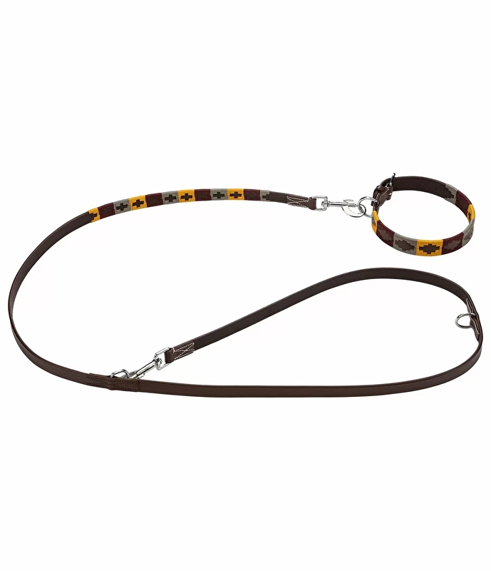 smycz + obroża Sugar Dog Polo, r. M, skórzana, bdb