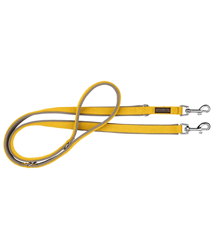 Solidna smycz dla psa z miękką wyściółką z gumy chloroprenowej, która zapewnia wygodny chwyt i zapobiega przecinaniu się podczas ciągnięcia smyczy. 3-krotna regulacja długości. 200cm. 100% polipropylen.