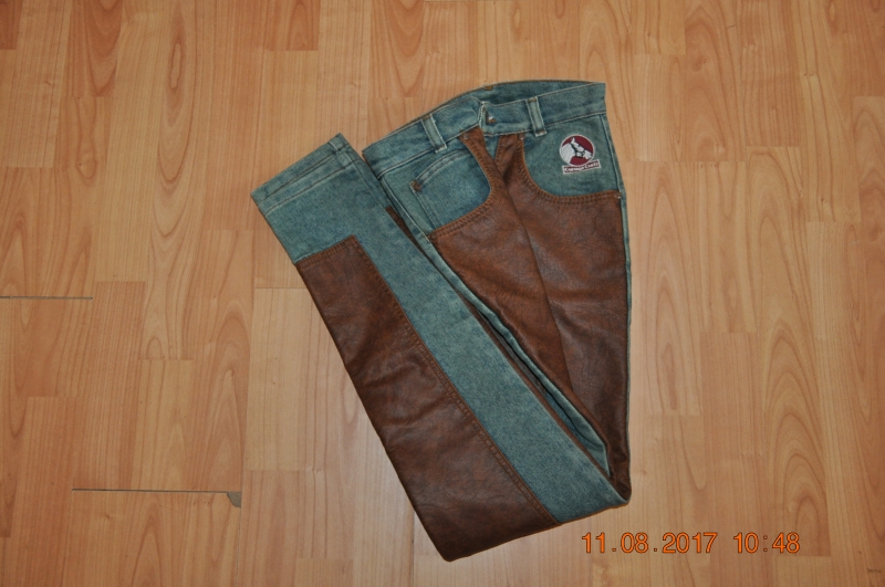Sprzedam męskie bryczesy/spodnie jeansowe firmy Cottage Craft. Rozmiar z metki jest niewidoczny, należy sprawdzić dokładne wymiary. Spodnie posiadają skórzane obszycia.