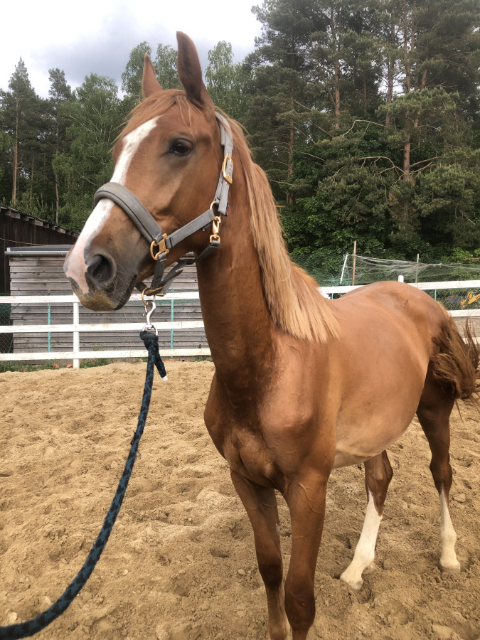 Klacz regularnie pracuje z ziemi, zna podstawy pracy na lonży. Podaje nogi, jest regularnie werkowana, spokojna przy wszystkich zabiegach pielęgnacyjnych. Codziennie prowadzana na uwiązie – uważna i szanująca człowieka.