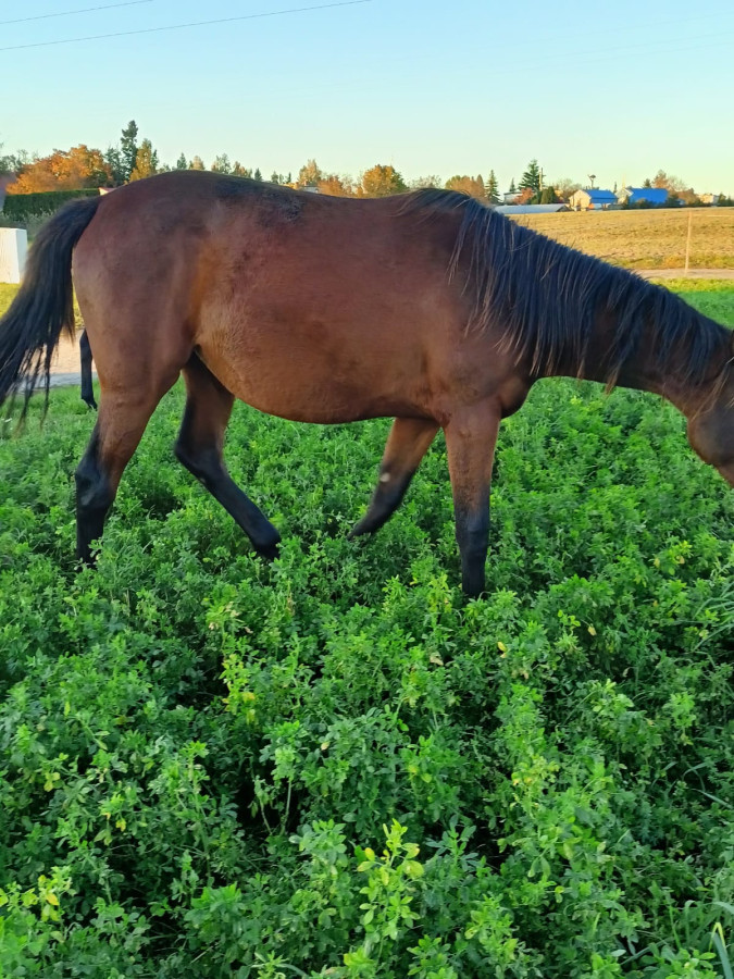 Na sprzedaż klacz pełnej krwi angielskiej Promienna Miss (Bush Brave - Paradise po Ecosse), polskiej hodowli, urodzona w 2024 roku. Klacz jest bardzo dobrze zbudowana, jak na swój wiek wysoka (około 155 cm w kłębie, jako 3-4 latka może mieć około 165 cm), silna, urodziwa, zdrowa, nie miała kontuzji, jest w bardzo dobrej kondycji. Może być użyta w sporcie, WKKW, w wyścigach konnych, w rekreacji, w hodowli. Ma zrównoważony charakter i ładny ruch.