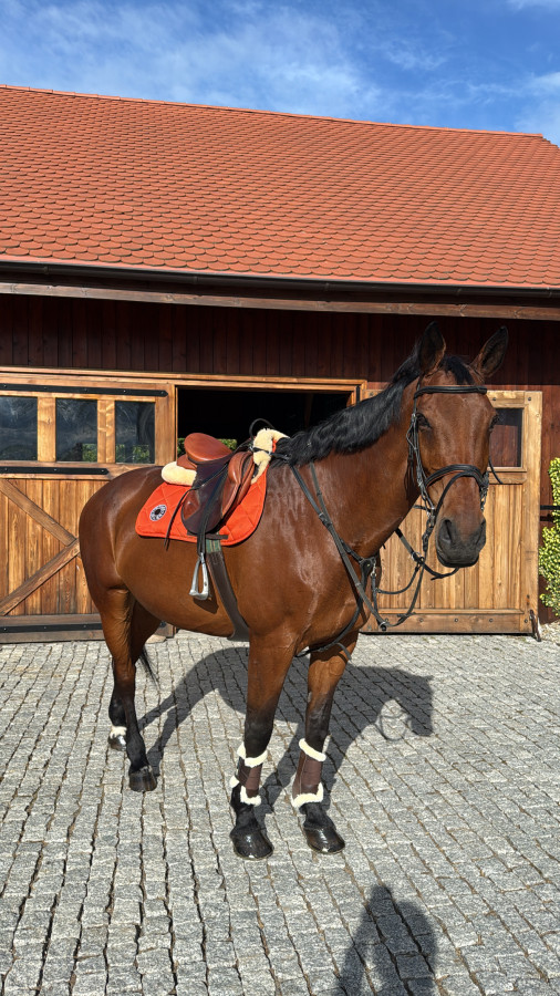 Klacz obecnie nie pracuje pod siodłem – jest roztrenowana, dlatego idealnie sprawdzi się jako koń do towarzystwa lub do hodowli.