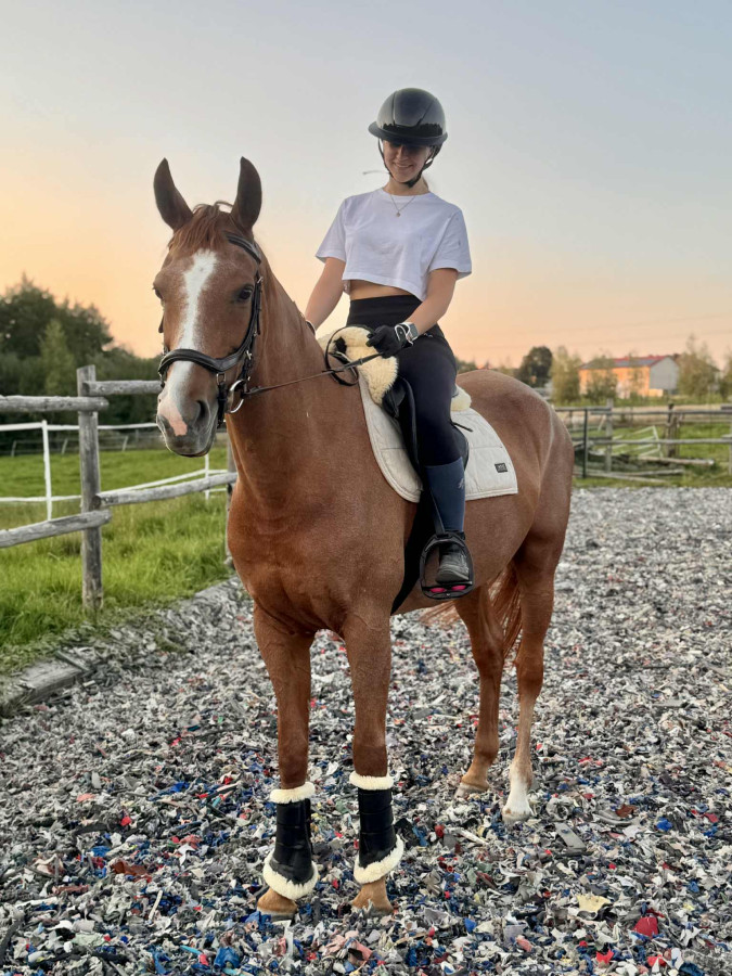 Liwia to klacz z wszechstronnym doświadczeniem – wcześniej intensywnie jeżdżona. Regularnie trenowała zarówno skokowo jak i ujeżdżeniowo. Chętnie uczy się nowych rzeczy i współpracuje z jeźdźcem. Obecnie ze względu na ograniczoną ilość czasu nie jest w intensywnym treningu.